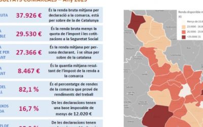 La renda disponible mitjana per declarant del Baix Llobregat l’any 2023 és de 27.366 €, i ha crescut en 628 € de mitjana respecte ...