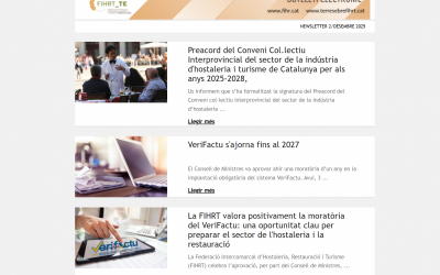 Aquesta setmana, l’E-FIHRT del 2 de desembre de 2025 concentra diversos continguts de gran rellevància per al sector de l’hostaleria, ...