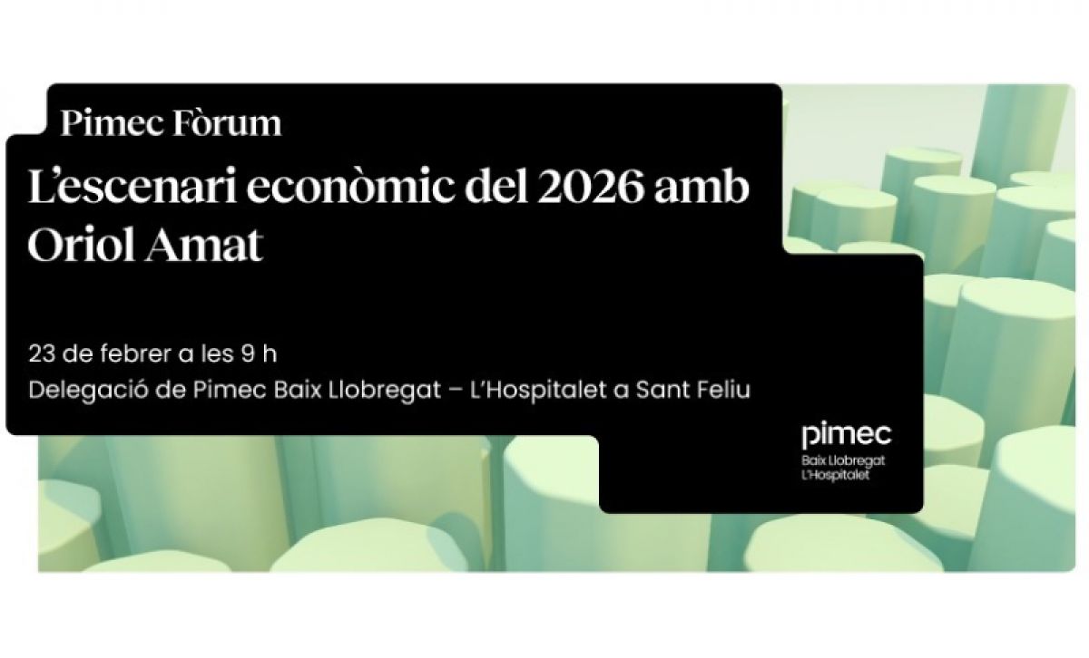El pròxim dilluns, 23 de febrer de 2026, a les 9.30 h a la delegació de Pimec Baix Llobregat – L’Hospitalet (C/ del Pla 166, 1a planta, Sant Feliu de Llobregat), l’entitat analitzarà la situació de l’economia catalana i les perspectives econòmiques per a aquest 2026 a partir de les principals projeccions macroeconòmiques.